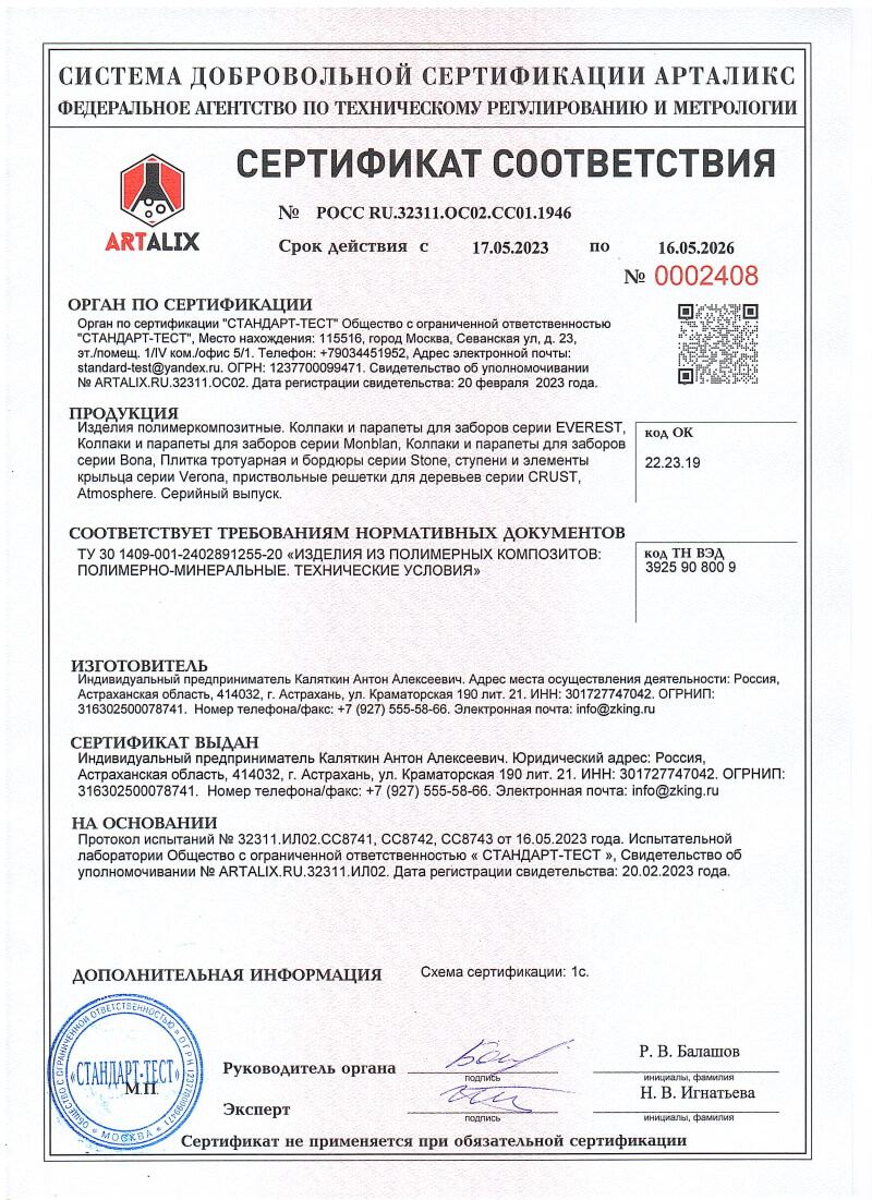 Сертификаты соответствия ZKING для Томска